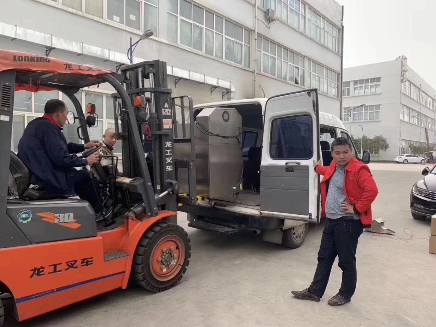 浙江客户来厂考察小型电磁炒货机满意,直接订购三台DCCZ3-6型、两台DCCZ5-5型多功能炒货机!直接现场装车拉走!