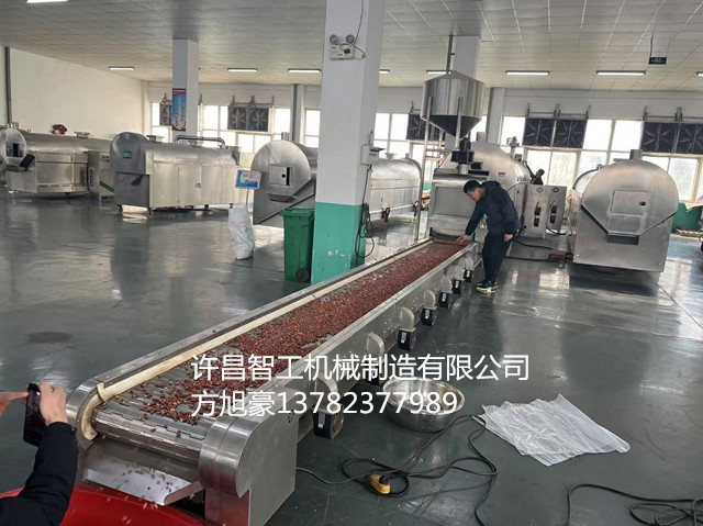 2025年新年伊始,河北做花生酱的客户,为了应对产能增加的需求,寄来200斤花生米试机电磁流水线炒货机。
