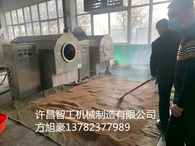 12月12日,河南客户一行二人带200斤芝麻来到许昌智工机械制造有限公司考察7-15型电磁炒货机。