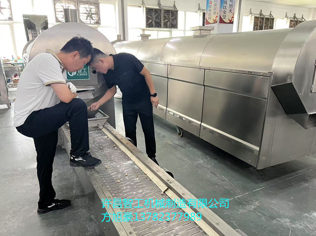 2025年7月27日,山东客户一行四人带阿胶珠原料来厂试机四米电磁流水线炒制。