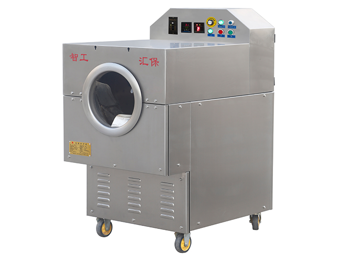 全自动炒货机无需人工看管 只需设置好炒制温度 炒熟自动警报只需一键出锅 无需炒货经验 三分钟上手 操作简单智能化程度高 该机是智工汇保三相电最小的全自动炒货机